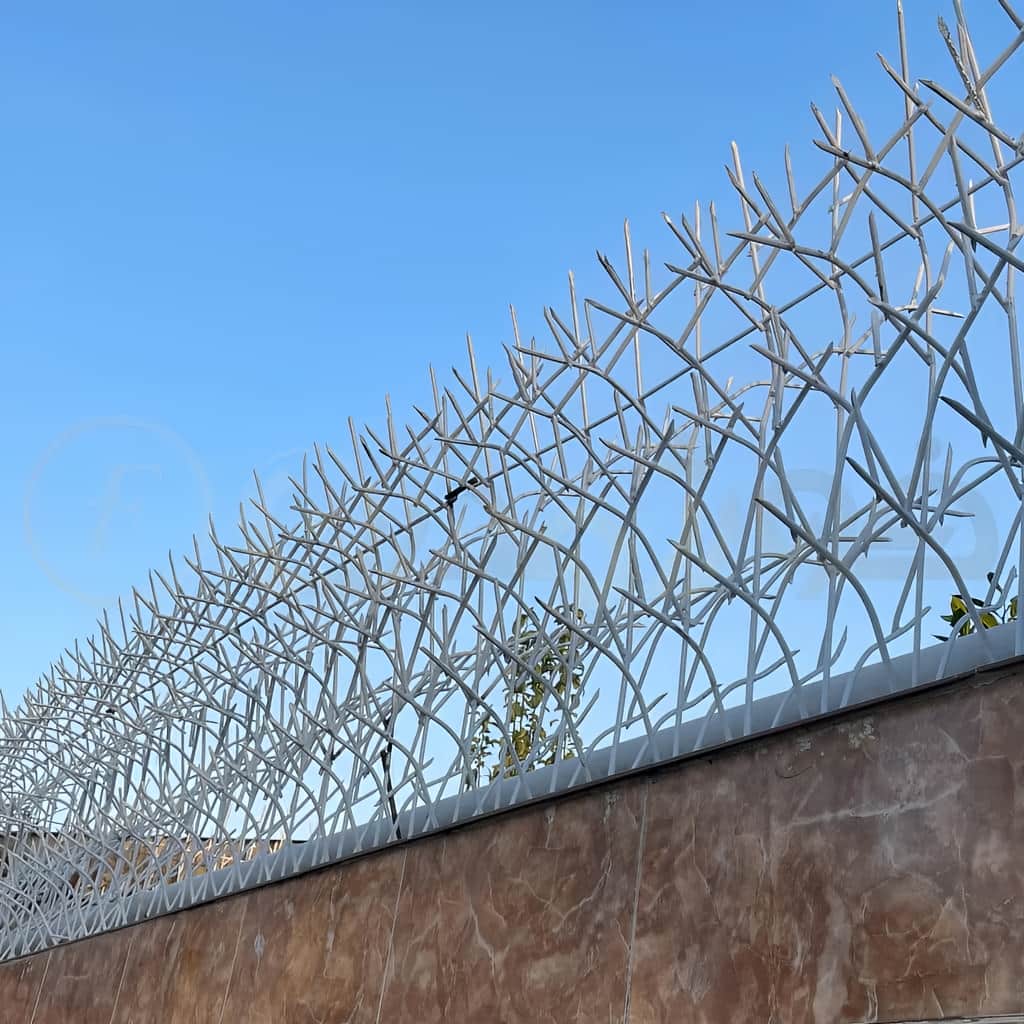 این حفاظ با طراحی خاص و آبشاری, به شکلی مؤثر از ورود غیرمجاز جلوگیری می کند و نمای زیبایی به دیوار می بخشد. |