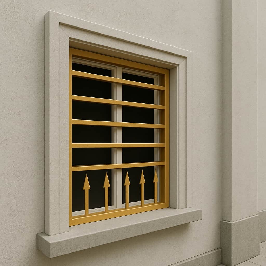 حفاظ پنجره تیغدار طراحی ساده و مقاومی دارد که امنیت بالا را برای ساختمان فراهم می کند و زیبایی مدرن و مینیمالیستی را به نمای ساختمان می بخشد.