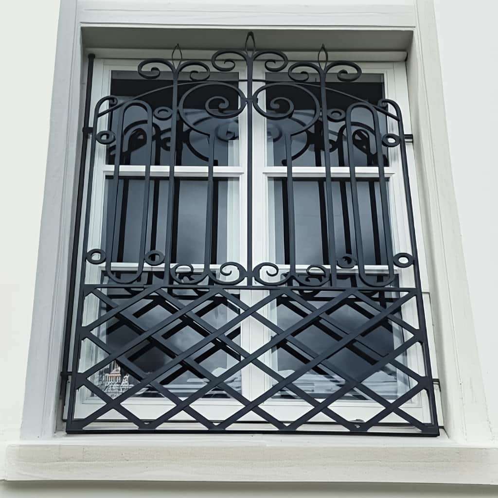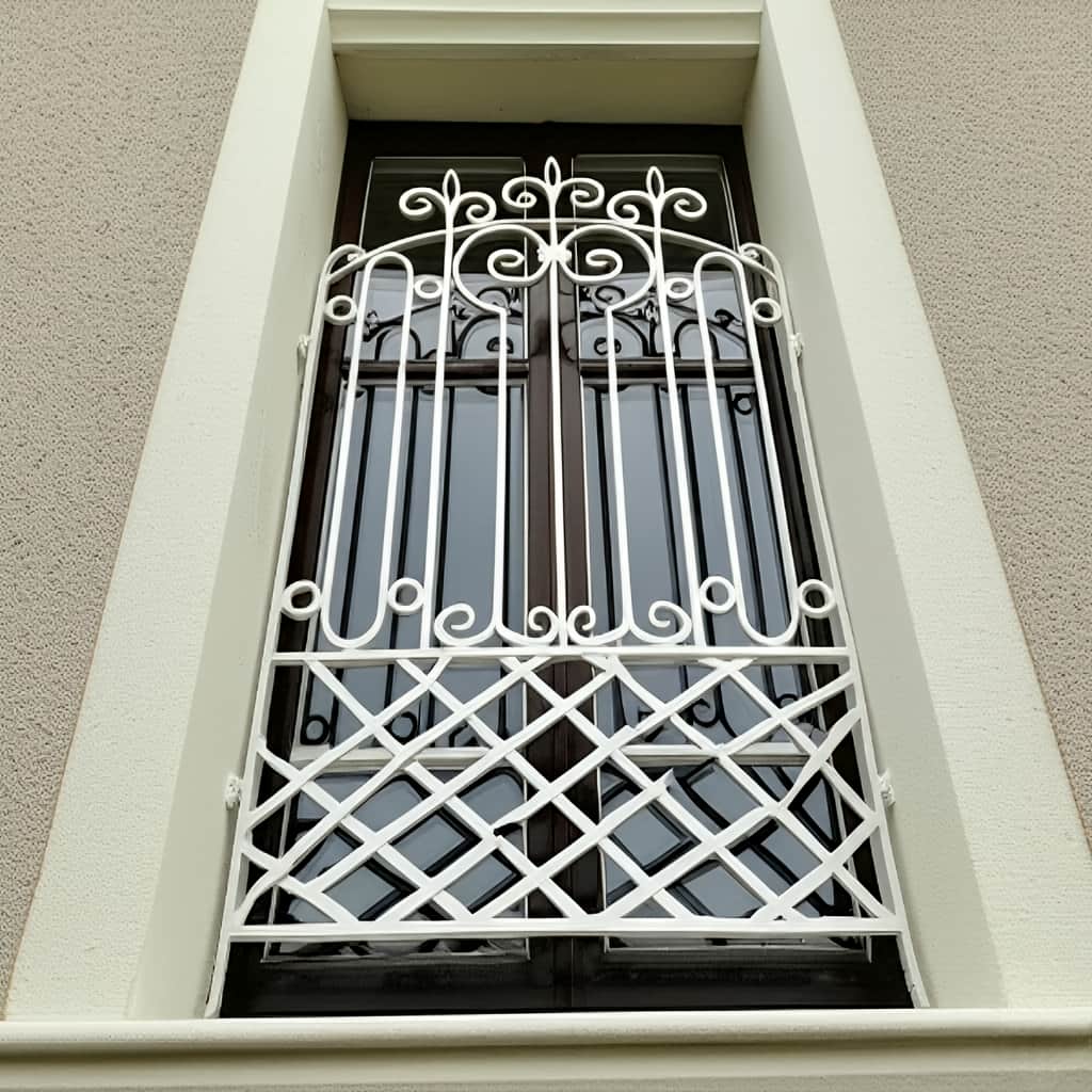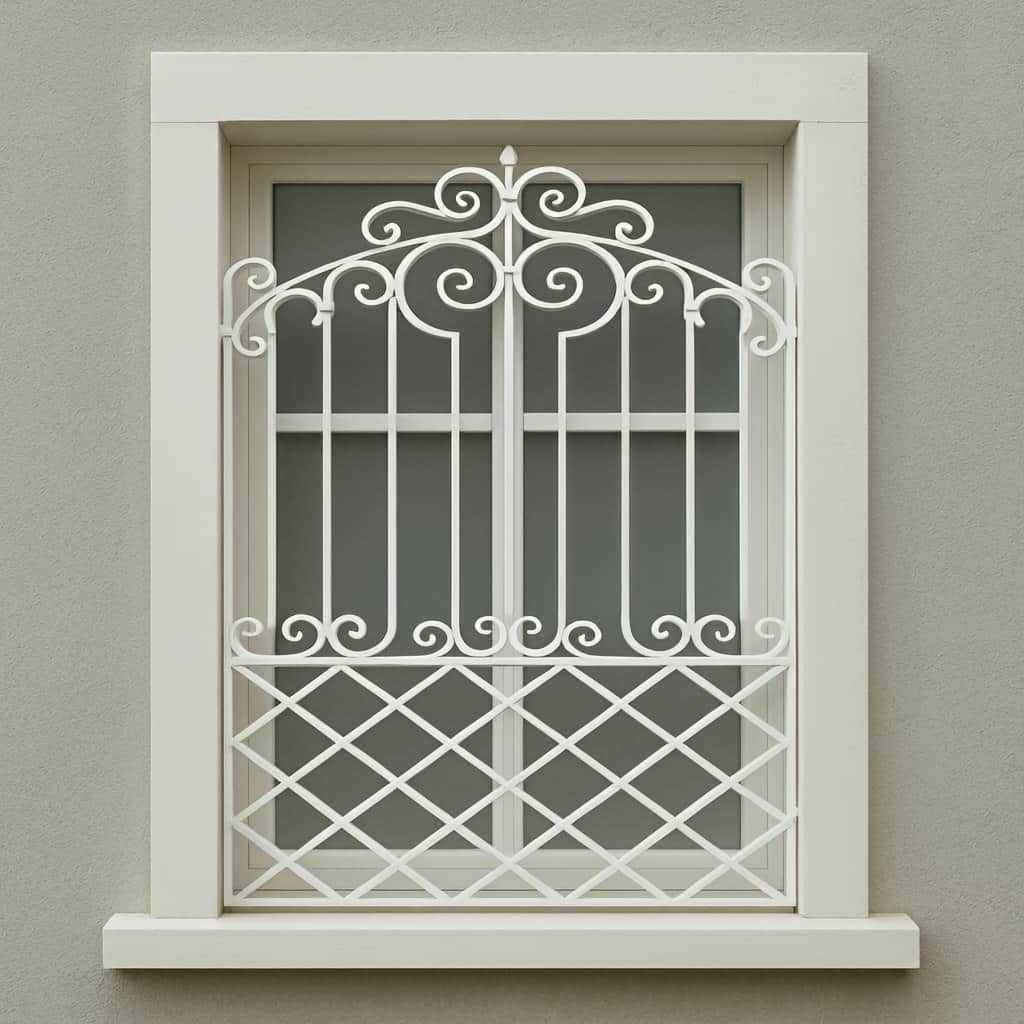 حفاظ پنجره رز با طراحی منحنی و متقارن, ترکیب خطوط عمودی و مشبک مورب, نمایی عاشقانه و شیک به ساختمان می بخشد. |