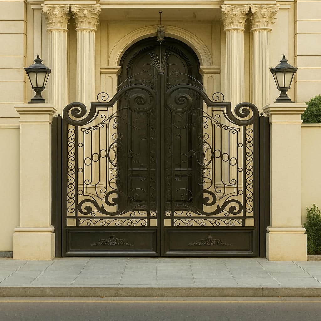 | ویژگی های درب فلزی نگین | درب فلزی نگین به عنوان یک درب فرفورژه لوکس, ترکیبی از اسکلت فولادی سنگین, باکس بندی منظم و تزئینات فرفورژه دستی است که هم امنیت بالایی ایجاد می کند و هم ورودی ساختمان را به نقطه کانونی نما تبدیل می کند و برای پروژه های سطح بالا گزینه ای متمایز محسوب می شود. |