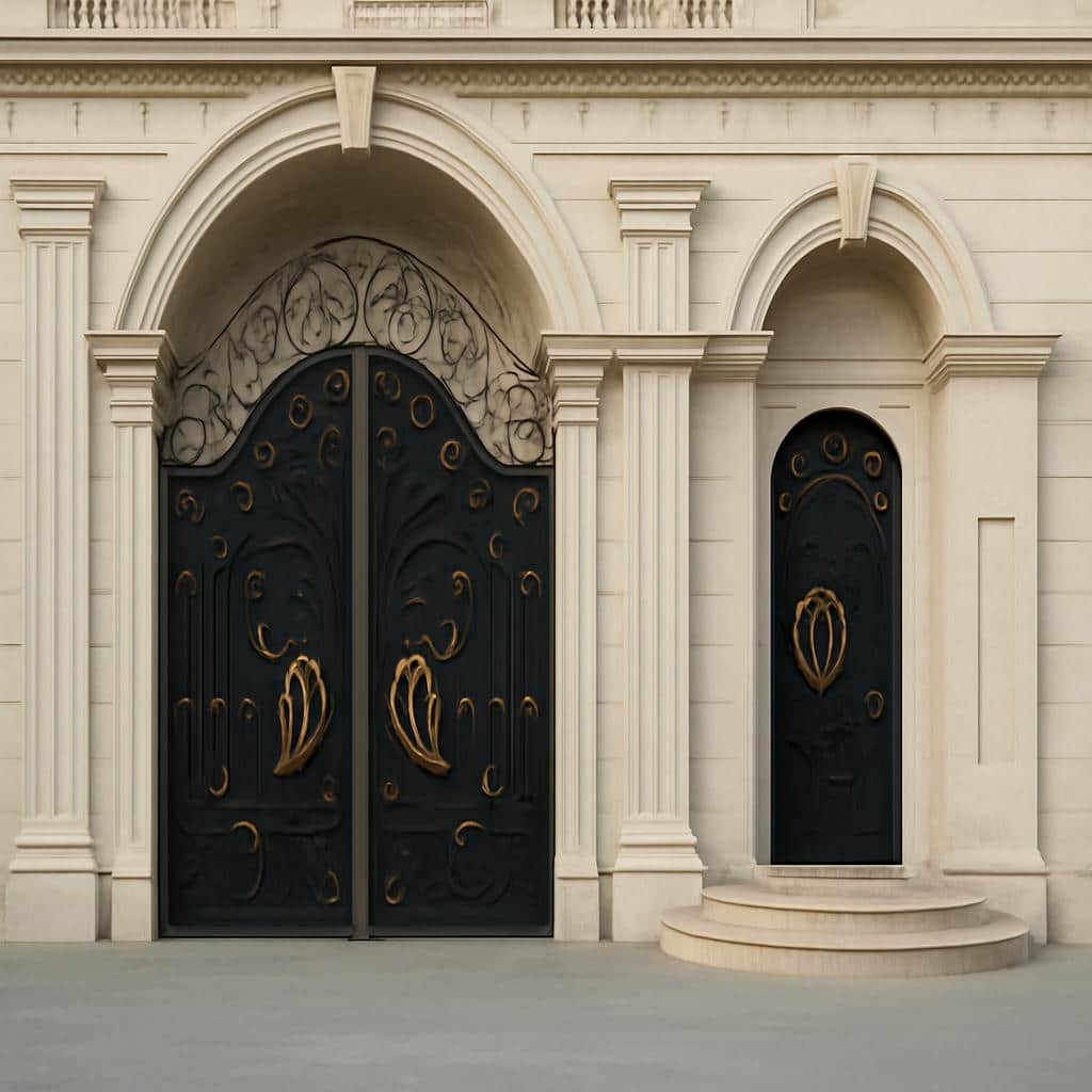 | طرح فرفورژه درب فلزی پروانه | طرح فرفورژه درب فلزی پروانه بر مبنای خطوط نرم و الهام گرفته از بال های پروانه طراحی می شود و می تواند شامل فرم های منحنی متقارن, جزئیات برگ و شاخه یا ترکیب ساده تری از خطوط عمودی و مایل باشد تا هم ظرافت بصری ایجاد کند و هم با سبک نما و نرده های جانبی هماهنگ باشد, در حالی که فاصله قطعات به گونه ای تنظیم می شود که هم دید به داخل کنترل شود و هم وزن سازه به شکل غیرضروری افزایش نیابد. |