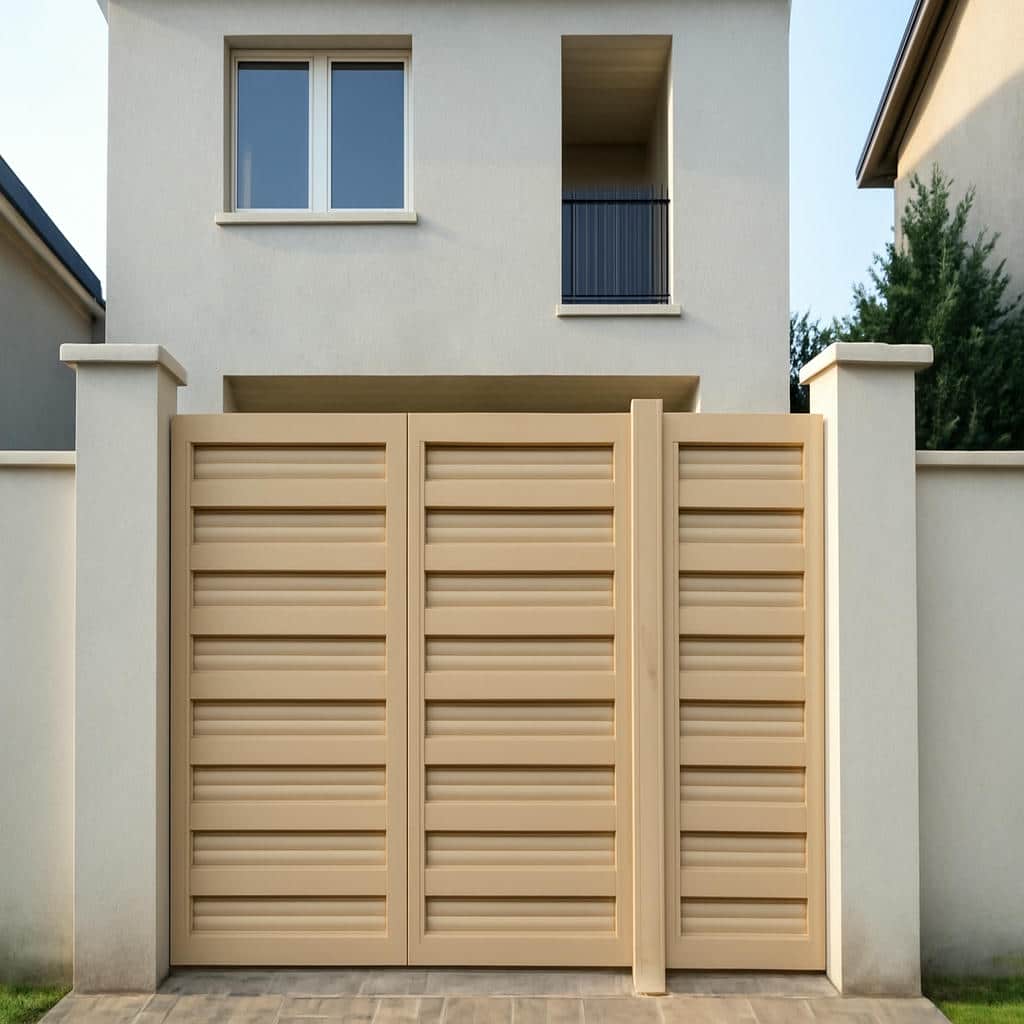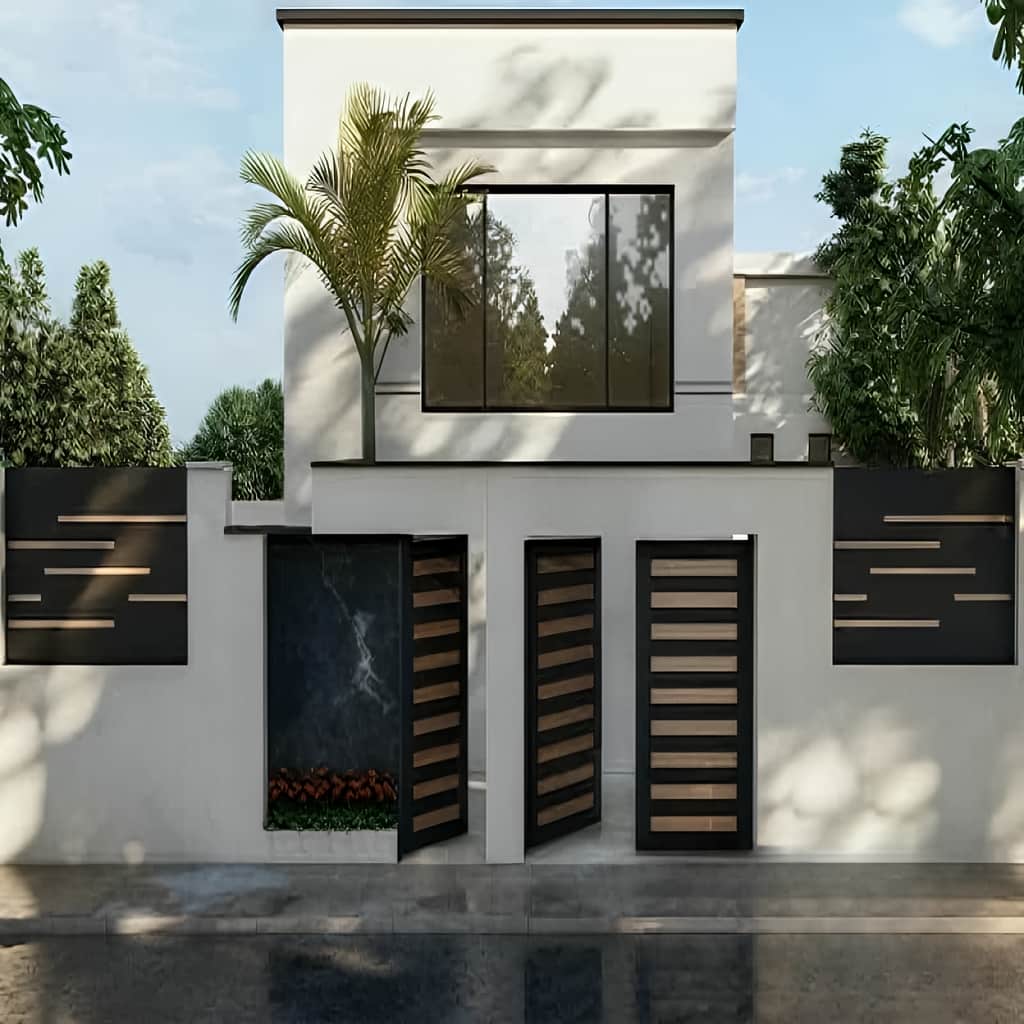 - امکان اجرای درب مدرن راسا به صورت لولایی دو لنگه یا کشویی ریلی و هماهنگ سازی طرح بین درب ماشین رو و نفررو, ورودی حیاط را منظم و حرفه ای نشان می دهد.